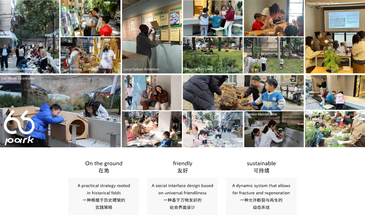 通过关系与空间相互交织,以社区培育、空间更新、多方共益的行动路径,共同完成66号公园的认知生长过程,以参与式共创的方式逐步推进的66号公园共建计划。