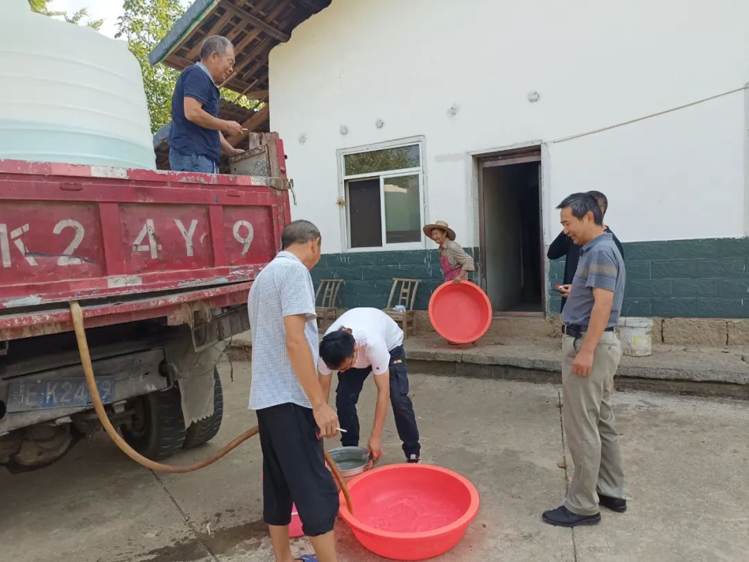 8月25日,为确保农户生活用水得到保障,工作队与村“两委”一道,积极配合有关单位抽调生活用水,整车装罐运送至火石岭村一组羊角尖缺水农户家中。省建筑设计院驻村队员李凯同志顶着酷暑挨家挨户通知送水事宜,并为年老体弱农户打水、送水上门,做好安全饮水摸排工作。他表示,这次共调水约6吨,解决16户农户生活用水问题,目前,全村各户家中存水至少可使用4天时间,灾情已得到及时缓解。下一步,李凯将根据天气情况,积极协调工作队及村“两委”在充分保障生活用水的前提下,调配设施设备保障农作物生产,坚决打好抗旱减灾主动仗、攻坚战。