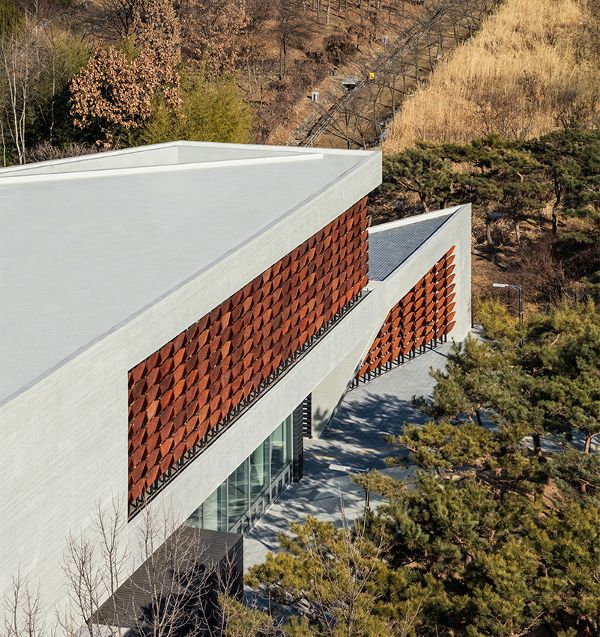 以前,韩国森林服务委托的木结构,一直没有成功吸引木材博物馆的参观者,因为这些建筑物有些普遍。为了试图展现其形象,软建筑实验室的mokyeonri木材博物馆使游客能够通过非典型展览体验木材。因此,设计本身创造了一个空间体验,人们可以在建筑氛围中使用他们的嗅觉,视觉,听觉和触觉,同时与周围的森林协调一致。