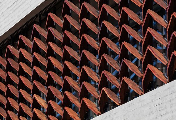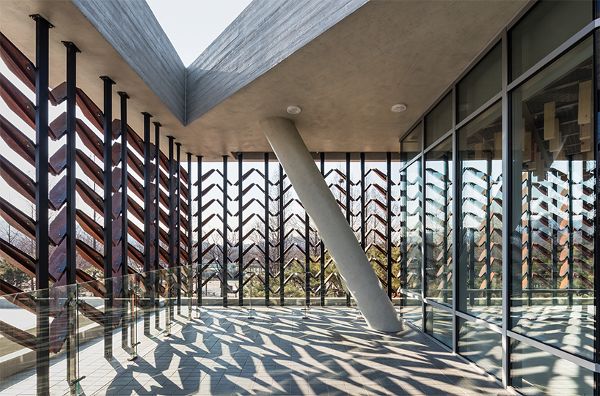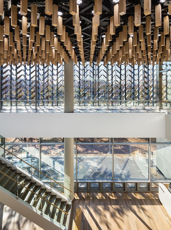 设计策略是在仁川大公园创造植物园的象征。在这个项目中,建筑抽象是突出的,叶片之间的阳光不断变化,这取决于通过环境墙(交互式木器具)的风向。这允许游客在不同建筑层面拥有木材的多感官体验,反映出森林每小时的变化。