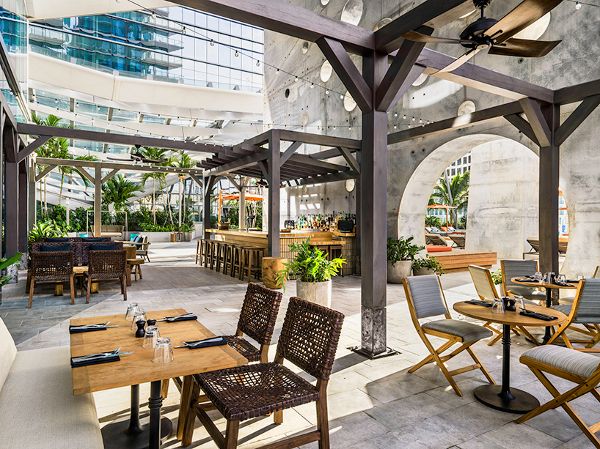 相对于迈阿密EAST的定位,美食家们似乎并没有进一步的举措。该酒店设有两间由总部位于洛杉矶的公司——Collective工作室集体设计的特色餐厅。quinto la huella拥有9,700平方英尺的空间,359个座位,其特色包括以当地红橡木和白橡木作为燃料的烹饪方法,一个突出城市海岸线的寿司柜台以及广阔的池畔户外餐厅。
