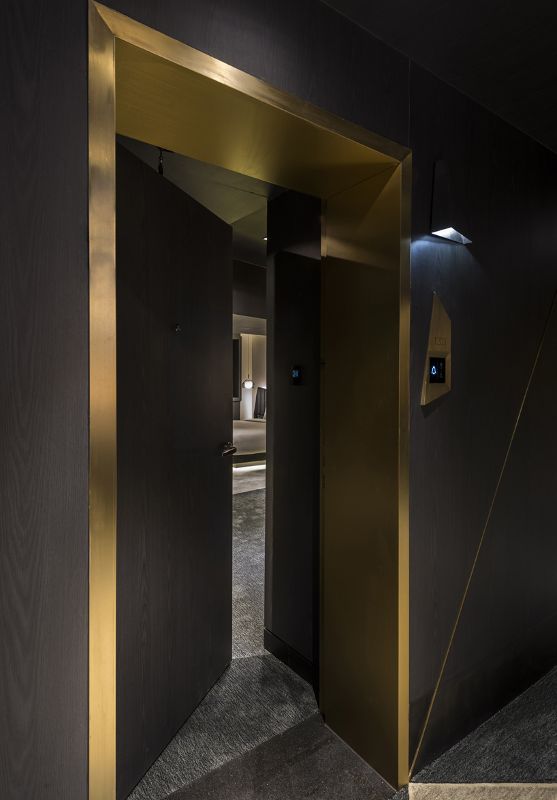 设计部的方法是通过各种颜色和美化来统一这个多样化的建筑。建筑在概念上被覆盖着黑色的炭灰色油漆,在当代的金色古铜上突出了关键的建筑细节。这些特色元素在黑暗的背景下闪闪发光,其突出显示了一个非正式的“编目”的重要细节。随着客人们探索这个大院,这个“细节目录”逐渐将历史与当代之间的差异集中在一起:微妙的并置,强调了任何适应性再利用设计所带来的丰富的紧张感。