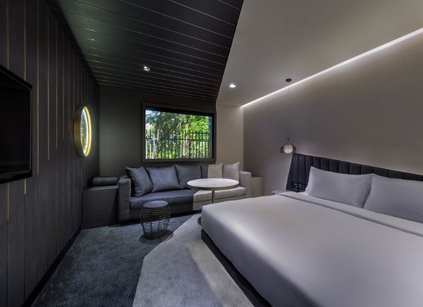 客人抵达酒店后,首先在vue酒店的社交中心之一开始:FAB咖啡厅和面包店。这个休闲而充满活力的场地面向嗡嗡的胡同主要道路,在那里可以见证当地日常生活和文化的场景。无论露台露天还是室内座位,FAB都是您品尝早餐,品尝快餐或品尝咖啡的完美场所。室内设计方法吸收当地的街头特色并将其运用到室内的材料和颜色使用上。各种各样的座椅角落和家具使得FAB体验变得多样和引人入胜。