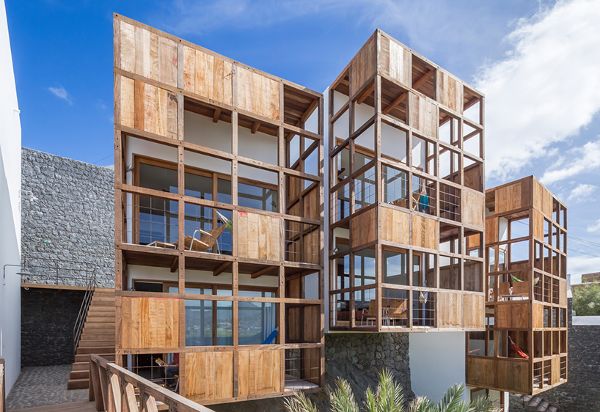 由于偏远的岛屿缺乏物质和资源,建筑师试图尽可能简化设计。从地板装饰到家具,构成该方案的许多元素都是手工制作的,都是由当地人制作的。木材已被用于建筑物的网格化阳台,而石灰腻子已被用来覆盖酒店明亮的白色结构。
