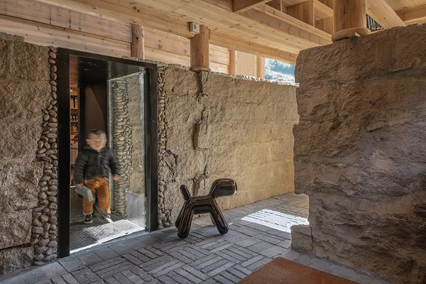 “一静”指的是阅读和冥想,取名为“静雅”。这个空间从以前的牛棚改造的。这个空间的标志是上下相互独立又联系的结构,是特别要保留的。下面的一层由碎石围成,是牛的生活空间狭小又黑暗,而上面一层用窄木头做的用来放饲料。这两个层次在空间上是分开的,但在功能上是有逻辑联系的。为了保持这一空间特征,将上面的“木房子”稍微抬起,这为读者提供了一个新的空间,这个空间变得更高还能获得更多的自然光。除了穿透的阳光之外,没有任何东西可以打扰这个宁静而封闭的空间。底层坚实的碎石墙得到了保留。