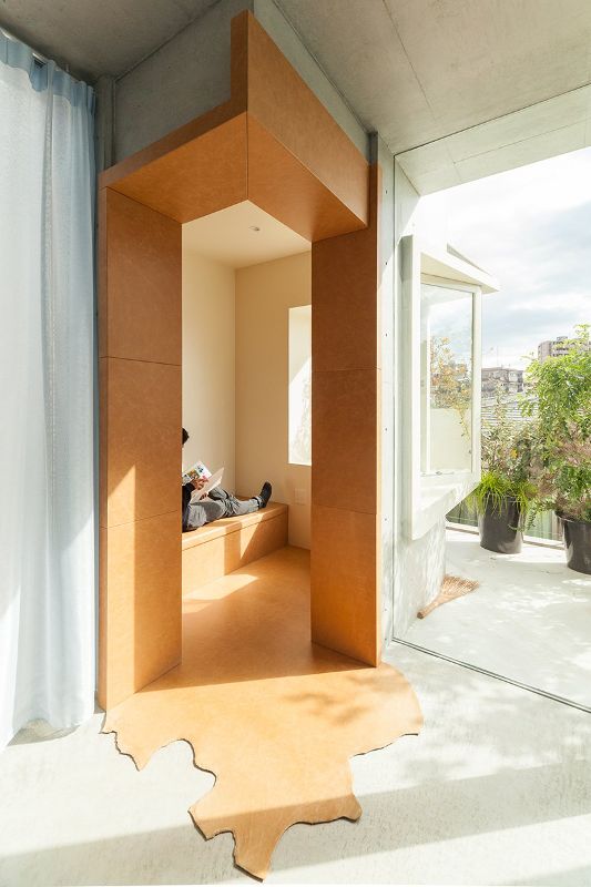 区分于简单地将楼板层层堆叠的普通建筑,该项目考虑环境背景因素,诸如所处的街道和其他外部空间。这就形成了建筑师称之为——一个“纠缠”的空间,这个“纠缠”的空间特点是其暧昧的室内外关系。“一棵树由不同部分构成,如树根、树干、树枝、叶子和花朵,但是这些部分不是完全独立的”,建筑师akihisa hirata说道。
