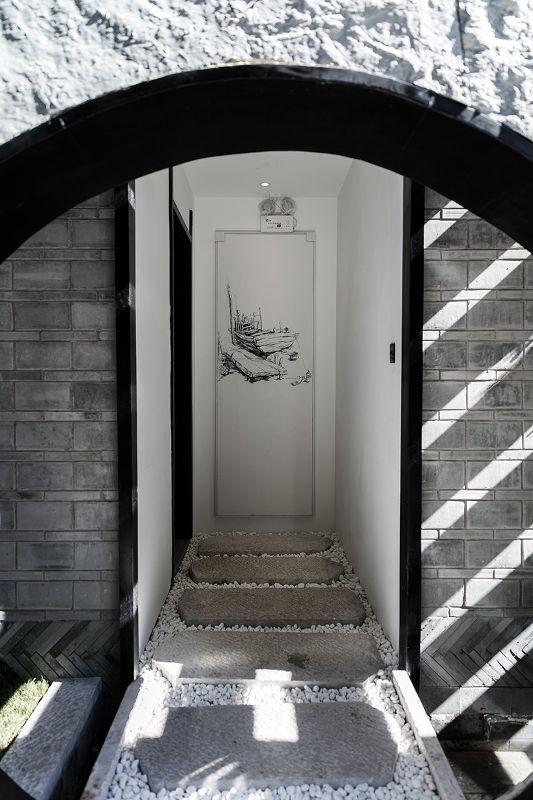 当你走上台阶时,蜿蜒的小路将你引向接待室。倒影绰约犹如水墨山水画,时光也悠悠然慢了下来。