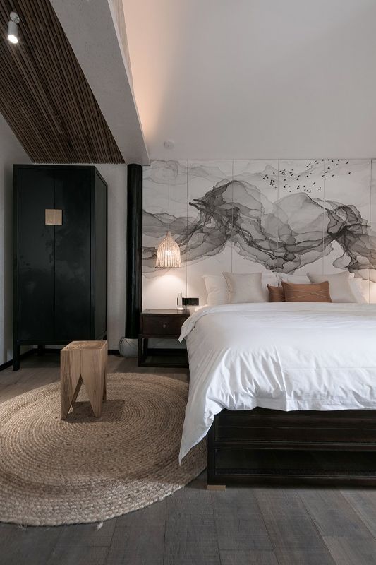 每一个房间都有自己的特点——它们简单朴素,所用多为原生态的材质和极简的色彩,颜色和周围的环境完全融合。酒店的水墨意境与自然质性,成为抚慰人心且让时间停顿的静谧之所。