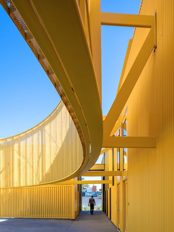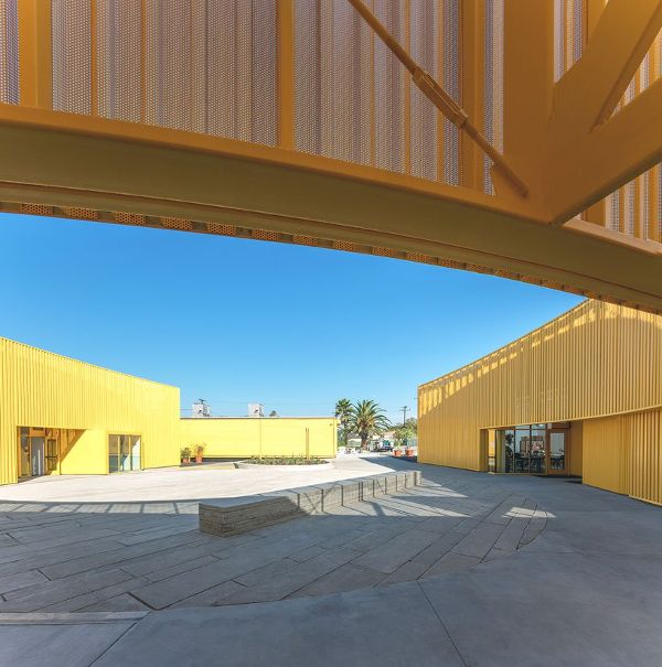 2014年7月22号,洛杉矶的一座校园近半范围毁于一场火灾。悲剧过后四年,这座校园已经得以完全重建。Brooks + Scarpa事务所通过设计一个容纳630名学生的新结构来重新构思旧校园。功能设施沿着一条细长的黄色建筑展开,建筑弯曲围合出一个院子。该场地包含十一余间教室,两个科学实验室和其他多种活动空间,所有的空间都采光充足,使得这所学校成为学生和教育工作者感觉更加愉悦的场所。