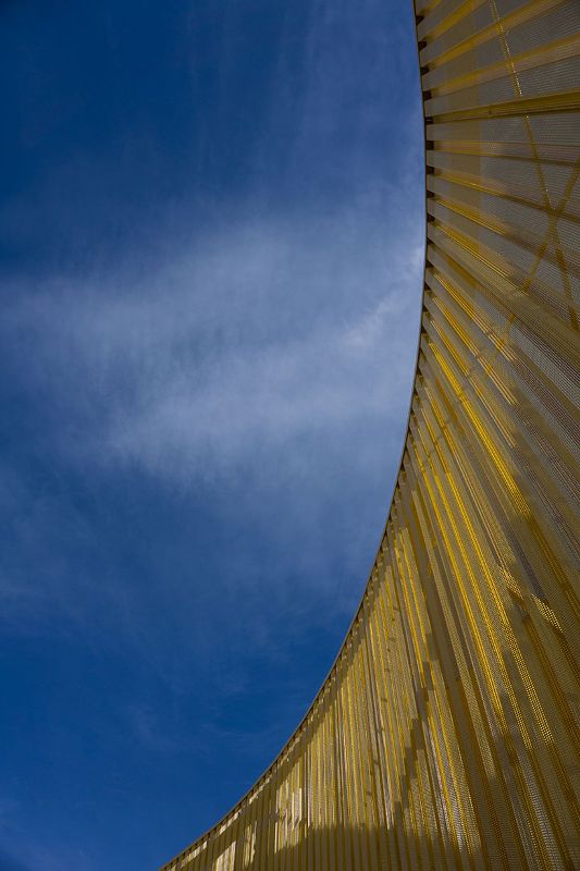 开放性空间、采光充足的大厅和教室让这所学校的价值和职责得以体现,为学生们提供了一个健康、稳定的学习环境。建筑立面的阳极电镀铝穿孔板在白天变成一面不断变化的闪烁着阳光的荧幕。穿孔板也为建筑提供了阴影,减少噪音,兼顾通透视野、自然采光和通风。