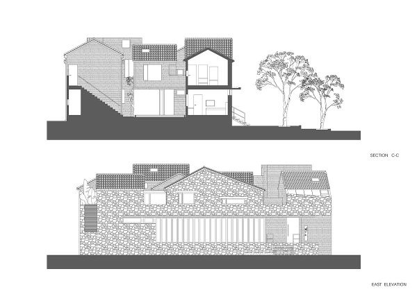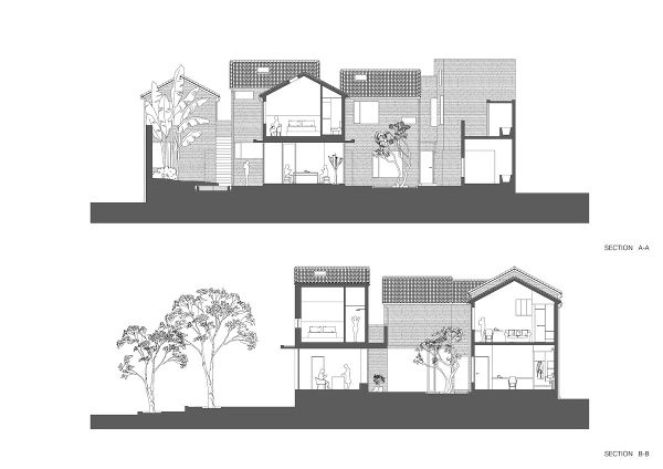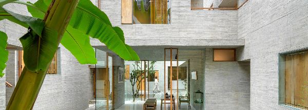 该建筑物几乎全部用混凝土浇筑,浇筑夹层的木板,使表面产生了细长砖块的效果。这些混凝土空间交织在一起,形成了一系列的消极和积极的空间,通向屋顶,给人留下一种更加传统的印象。由于建筑规范,80%的屋顶都是用历史悠久的砖瓦砌成的,这使得极简主义的空间更加兼容并蓄。