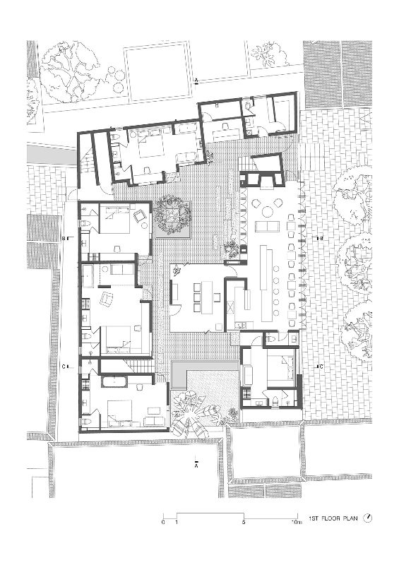 庭院不规则的布局创造了许多有趣的房间,没有两个相似的。14号的每一个小院落都有其独特的魅力,但都有着虚实空间的跌宕起伏,模仿着外面的庭院。建筑师解释说,他们认为每个酒店房间都是不同的建筑,因此,按照他们的说法,酒店就像一个小村庄,一系列特别的策略创造了独特的用户体验。无论你走到酒店的哪个角落,嬉戏的空间都是你的想象。一个房间绝不仅仅是一个盒子,而是一个迷宫,在这个迷宫中,下一个空间被部分显露出来,给房间一种开放和宏伟的感觉。