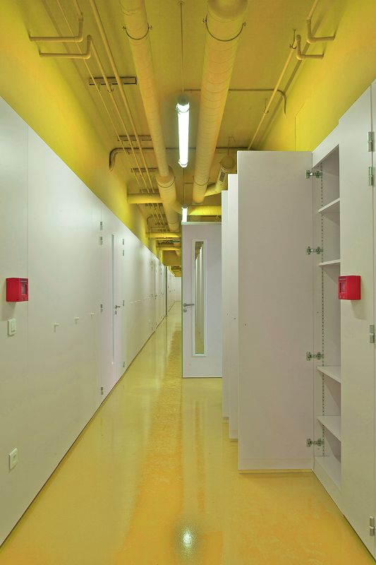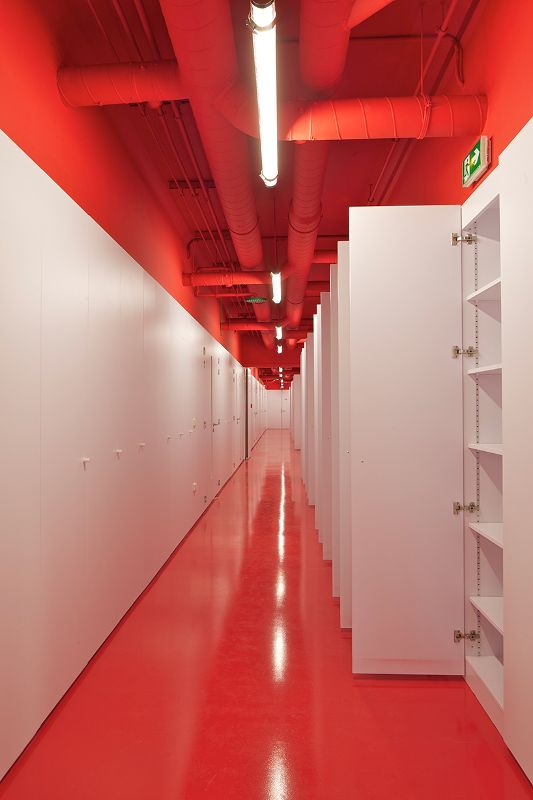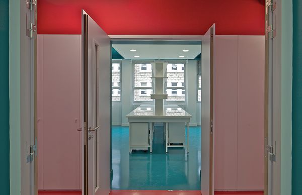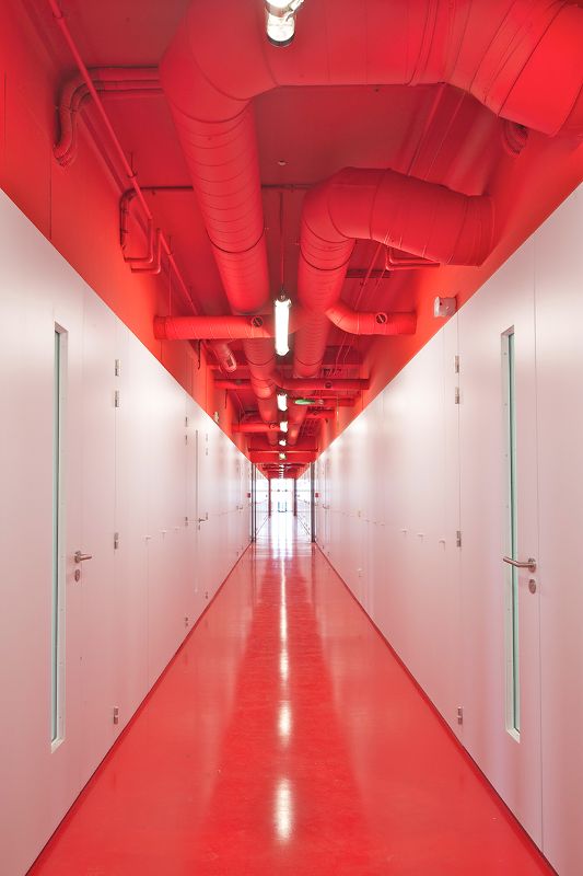 现在,这些走廊包括了内置式的储藏室。使用强烈的色彩和实用的系统性的视觉复杂性, anonyme工作室将空间的图像与建筑物的程序连接起来。