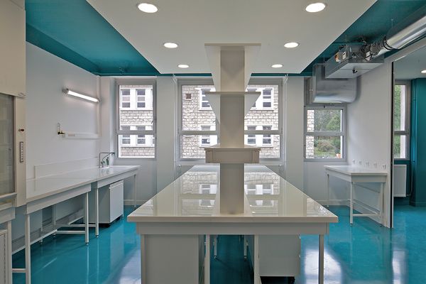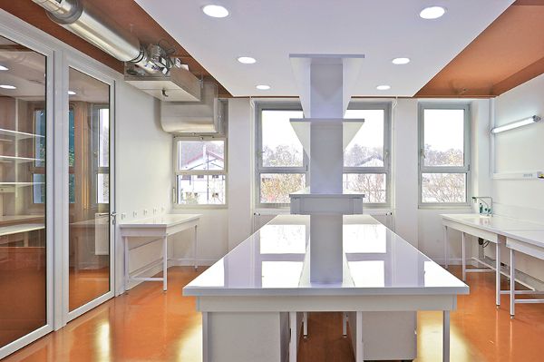 位于凡尔赛宫旁边的是由实验室、办公室和空调房组成的两栋建筑。由于研究工作的特殊性,所有的空间都堆满了材料和设备,所以装修的目的是为了营造一个新的室内形象,创造一个更合理的使用空间。