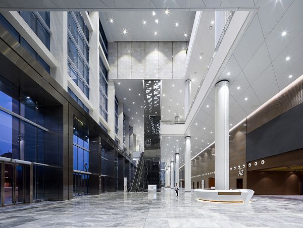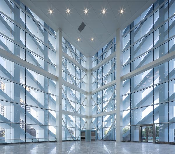 独特的象牙形立面也具有功能性——立面采用几何金属桁架,减少了30%的空调能源能耗。玻璃幕墙的流动阴影和阴影,通过它的立面,创造出了建筑内部和外部的自然的相互连接,带来了巨大的现代感和空间的艺术感。