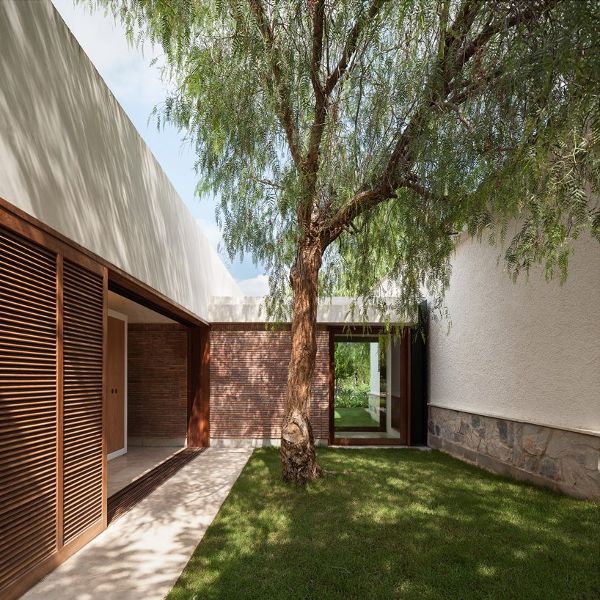 Mesura事务所的设计师曾期望利用葡萄牙建筑师艾德瓦尔多•苏托•德•莫拉在波尔图设计的艺术之家的墙体建造方式。正是因为这个案例导致四号别墅最终变成一座室内外无缝联系的集合。这座砖石建筑以四个遮蔽新建客房的拱顶、一个半围合的起居室、以及“门廊”为特色——这是一个传统的室外就餐区域,住在别墅的家人可以聚集于此享用周日午餐。这三个功能用房排成一行,整理成一个空间。