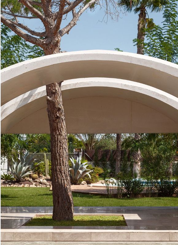 埃尔切,西班牙巴伦西亚省的一座小镇,建筑事务所Mesura设计的IV别墅的设计场地就位于此——该项目是由一座朴素的19世纪80年代度假别墅扩建而成。来自巴塞罗塞的建筑事务所Mesura通过扩建部分将这个乡村场地变成一个半围合的花园和庭院的展示馆。该项目的场地非常特殊,因为新空间必须同建筑原有的设施相协调。本着建造一座花园建筑的想法,该事务所力求减少室内外的严格分界,这样就可以充分利用埃尔切的气候特点。