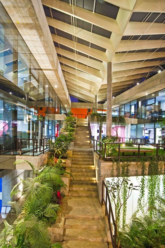 印度工作室CORE architecture受委托为当地公司EBIL开发一个总部大楼,并设置了一个节能建筑,将项目的高端技术部分与突出绿色设计的建筑视觉相结合。为了满足这些要求,同时,考虑到建筑的使用者——员工,核心地提出了一个将原始的混凝土结构作为内部基础,郁郁葱葱的热带花园的基地。