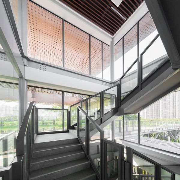 公园内的建筑物试图以多种方式与周围的自然环境融为一体,而不是以入侵者的姿态而存在,它们是揭示当地自然环境本质的装置。在设计过程中,他们不仅秉承中国古典园林建筑的传统,同时为现代化的开放式公园赋予了新的活力。