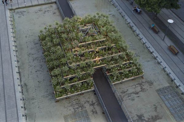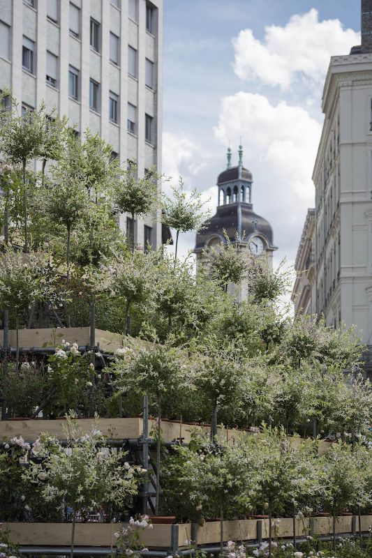 法国植物艺术家Patrick Nadeau与生产机构Tetro合作,用植物塑造建筑。使用日本的灌木和鲜花,设计师在里昂的中心设置了一个绿色圆顶。