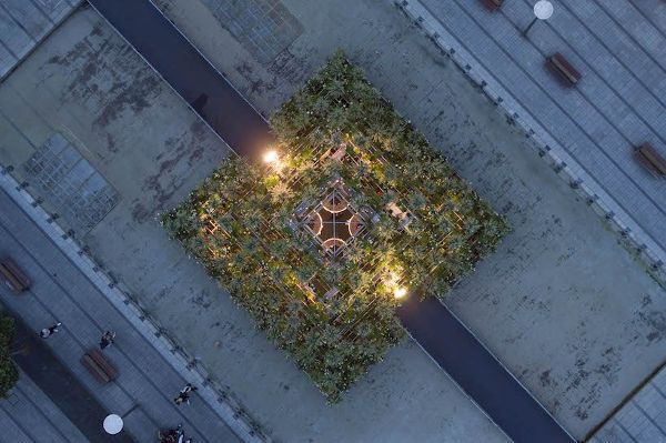 它位于游泳池中心,正如设计师所说,是一个“浮动花园”, 是为了邀请人们在城市中心郁郁葱葱的绿色避风港中放松身心而建造的。圆顶形的装置让人联想到魔法、儿童世界和想象中的风景。