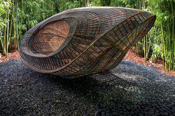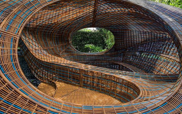 UN工作室是由ben van berkel创建的一家荷兰建筑公司,该工作室设计了一种可移动结构,它被设想为一个让人休息、静思和专注的地方。该项目是“革命预制馆系列”的一部分,该装置集多种功能于一身,以丰富现有空间。使用100%可回收的高密度聚乙烯(HDPE)作为材料,先经过数字化设计,再由技能娴熟的工匠手工编织。