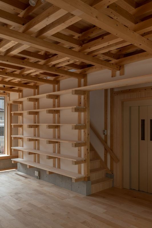 森田和也设计事务所在京都建造了一个两层的木格子结构,用来容纳浅田档案图书馆。这座建筑由9厘米见方的廉价柏木建成,反映了图书馆的馆藏,它关注人权和社会受压迫的人们的支持。柏木通常被认为太脆弱、太小,不能用于建筑。