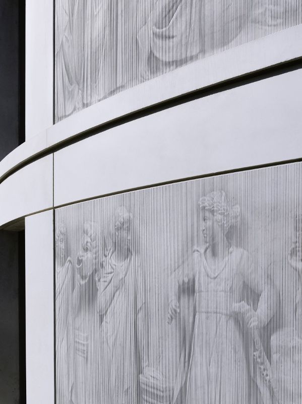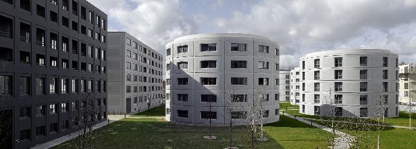 这五座被称为“缪斯女神”的建筑参考了古希腊和18世纪早期的装饰性花园。圆柱表面覆盖着裸露的预制混凝土,上面刻着希腊神话的照片。在建筑内部,垂直交通路线位于中心,每层包含14个住宅,每个住宅面积18.5平方米(200平方英尺)。同时,周边建筑还为人们提供了各种类型的住宿。