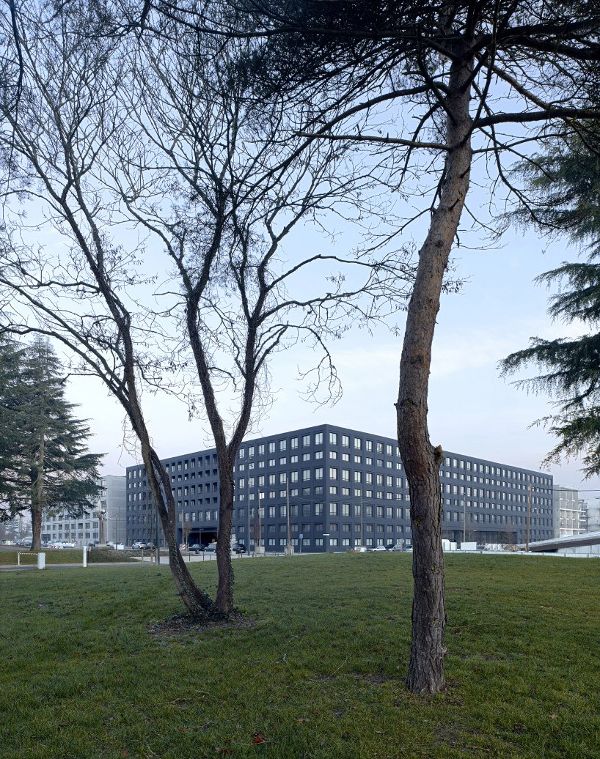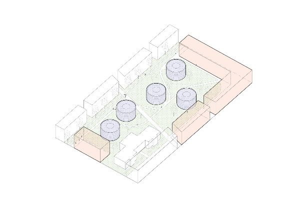 LAN与clement vergely 建筑事务所和topotek景观公司合作设计了这个方案,他认为这个项目是一个协调建筑和景观的机会。因此,该项目基于一个简单的想法:将地块边缘加密,在中心创建一个公园。三个黑色建筑,包含70%的住宅,线性地布置在场地的周边,而公园内的五个圆柱形结构包含了项目的其余部分。