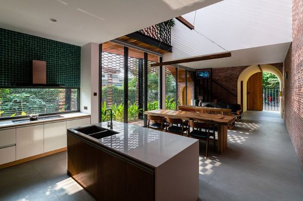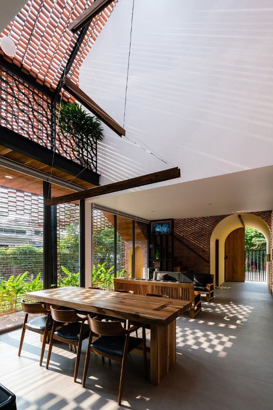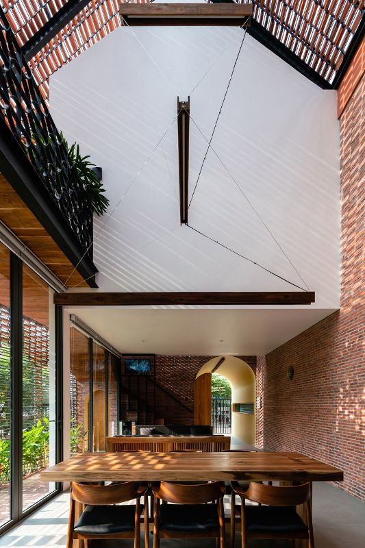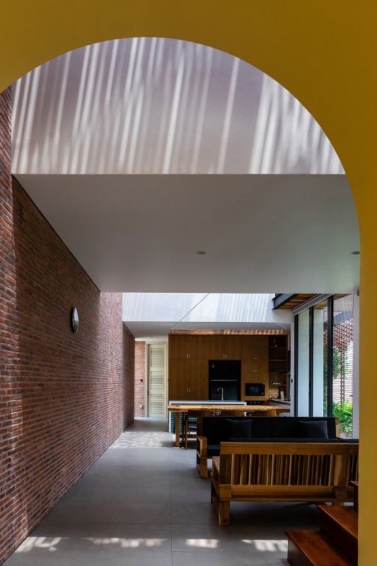 越南工作室指出:“从上面看,这栋房子就像两个纯白色的小块,与其单独的砖壳形成对比。”“这就是我们对新旧、私人与公共以及家庭世代之间关系的隐喻。更重要的是,正是家庭价值观庇护并激励着我们所有人。”