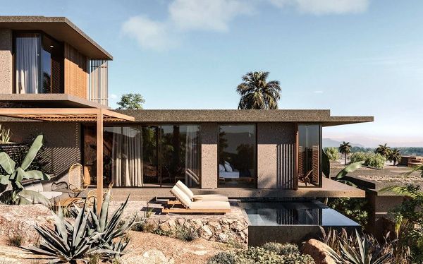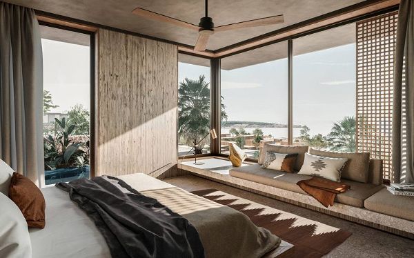 k-studio和lamb and lions将casa cook chania设计成一系列野兽派建筑,覆盖着光滑的混凝土和木材,郁郁葱葱的热带柔和景观和编织的户外藤条家具使其变得柔和。温柔的暖色调,结合当地有质感的石头和中世纪风格的家具,创造出一种悠闲奢华的氛围。室内元素融合了石头、深色木材、泥土纹理的亚麻布和藤条编织,为每位客人创造了一个放松的私人庇护所。建筑的建筑语言体现在海岸线上,包括海滩俱乐部、概念商店和游泳池,过渡到更大胆、更野兽派的美学,更好地为暴露在大海和咸湿空气中做好准备。