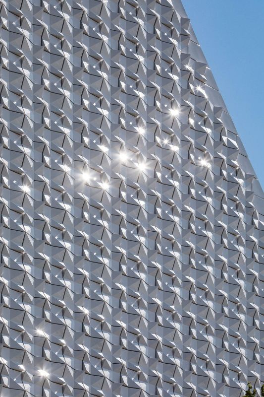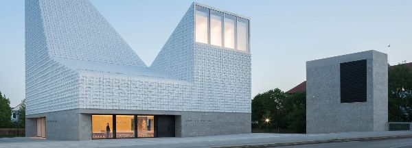 meck architekten设计的教区教堂seliger pater rupert mayer位于慕尼黑东北部的poing市,采用雕塑形式,顶部有独特的屋顶景观。为社区创建新的标志性建筑,建筑采用了该地区出产的坚硬的石头作为基座,上部包裹在白色瓷砖中,由于白色瓷砖不规则的几何形状,产生独特的外观折射的光效果。