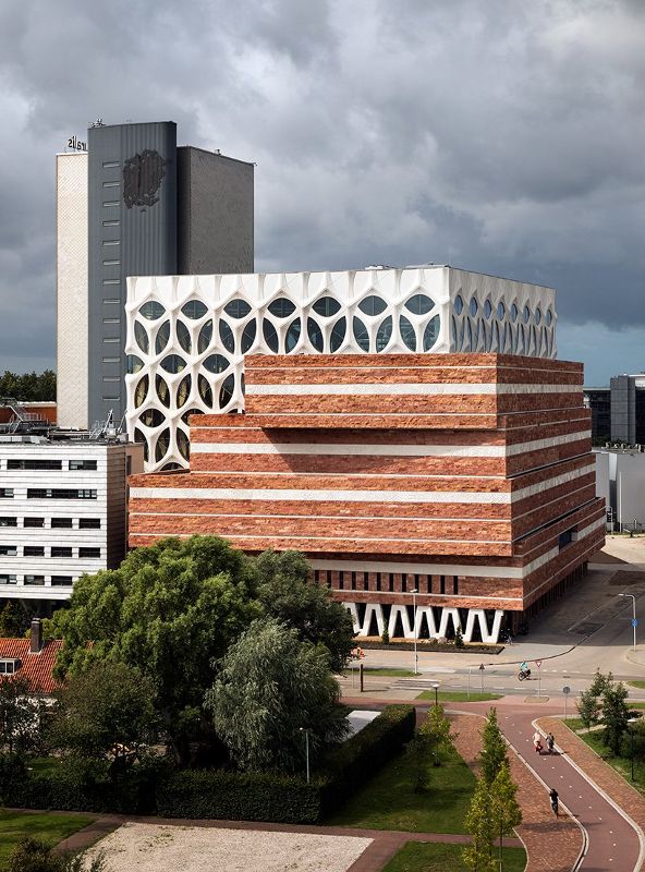 在荷兰莱顿市,Neutelings Riedijk Architects与时装设计师Iris van Herpen合作设计了生物多样性中心(Naturalis),该研究所的悠久而丰富的历史可以追溯到1820年,由威廉一世国王创建。在过去的十年里,这里的游客数量不断地增加,现在年均访问量已经突破40万人。因此迫切需要对原建筑进行翻新和扩建。Neutelings Riedijk Architects试图将既有建筑和新建筑有机地融合,每个区域根据不同活动建造不同的外形,并通过一个光线充足的中庭连接起来。这座新的、面向未来的的建筑群将会把4200万件展品聚集在同一个屋檐下,并且展品仍在不断地扩充。
