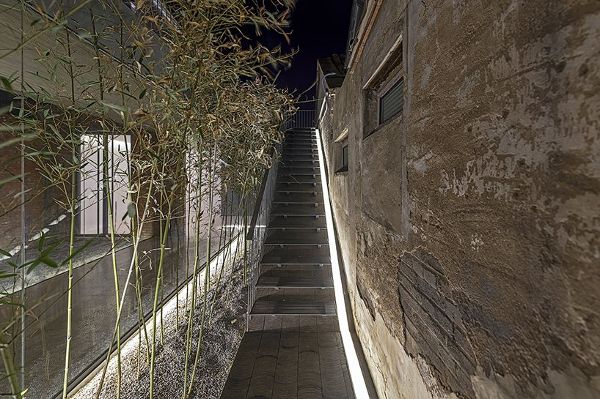 基于平屋顶建筑的特点,建筑师在原来的平面格局上添加了连廊和楼梯,将屋顶与地面、房屋与庭院相互串联,通过这种方式,形成了一条折叠的循环路线,让建筑的内与外、上与下、新与旧产生互动关系。
