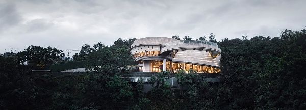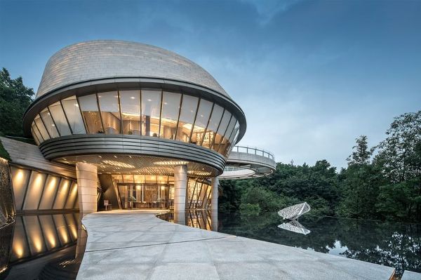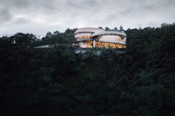 在重庆照母山山顶上的一个关键位置,LWK+Partners为他们的客户龙湖地产设计了一个陈列室。把它作为一个展示豪华别墅和待售房屋的“销售画廊”,该项目被设想为“盘旋在宏伟的景观之上的辉煌宝石”。