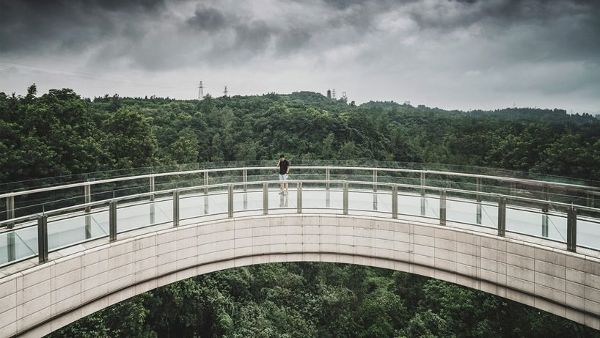 这座建筑的规划包括两个展厅,通过一座玻璃底的桥相连,也就是所谓的“天空步道”。建筑师这样做的是为了最大限度地欣赏下面山谷的景色,桥梁从主楼悬挑而出,为游客提供了戏剧性的体验和周围山地景观的全景。