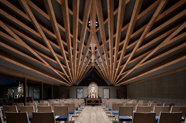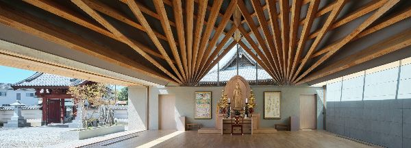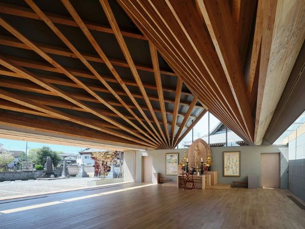 新kannondō最明显的特征是其结构表达屋顶,跨越大厅的长度没有一根柱子的支持。设计团队使用的设计策略得到了这样的评价:“我国人字形屋顶的寺庙是一个树状结构的形象,因为殿的人字形屋顶让人想起佛陀的启示下林登树,以及其结构的景观让人想起光线的回来反射。“该项目详细阐述了该项目对当地社区宗教机构转型的回应,团队继续说道:“通过在建筑类型上叠加新的价值观,这些建筑类型往往会被宗教设施的固定观念所束缚,由此产生了与以前不同的使用方式,并由此产生了新的下一个价值观,并再次重叠。”