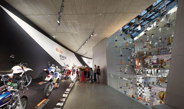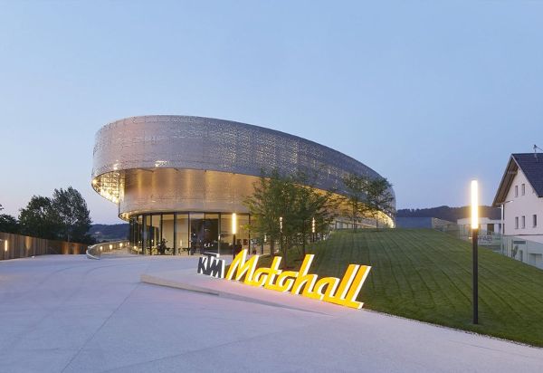 奥地利建筑公司X Architekten为KTM motohall建造了新建筑,其中包括展览空间和活动场地。该公司的新总部位于奥地利的马蒂霍夫,充分体现了该品牌的活力。该公司的口号“准备比赛”是建筑几何形状的灵感来源,类似于一条环绕场地的加速金属带。