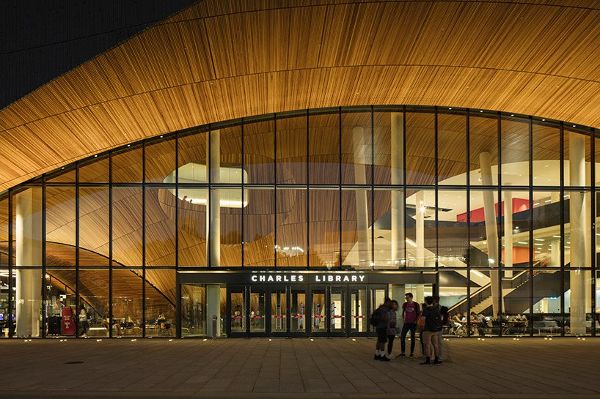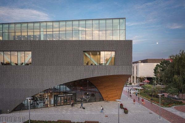 坦普尔大学由Snøhetta设计的查尔斯图书馆于2019年秋季学期开馆。该项目位于两条主要步行街的交汇处,为该校学生提供了一个新的社交和学术场所。该设计是与Stantec合作开发的,对传统类型里研究型图书馆作为书籍储存库的功能进行了重新诠释,将建筑整合为多样化的协作与社交型学习空间。