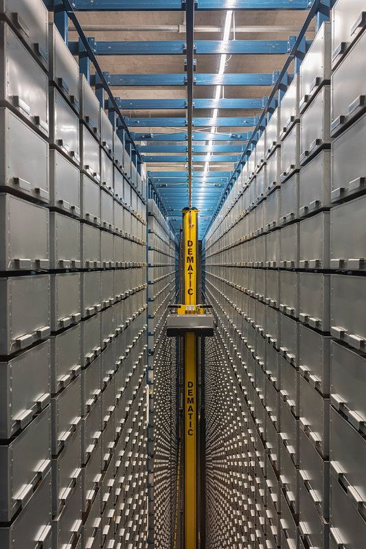 图书馆藏书主要存储在高密度自动存储和检索系统(ASRS)中,它被亲切地称为“图书机器人”。它高57英尺,跨越大楼三层,容量近200万册书籍的空间,目前存储150万册,该程序减少了图书存储所需的空间,同时扩大了图书馆藏书的访问通道,增加了协作学习、学术资源和个人学习空间的空间。