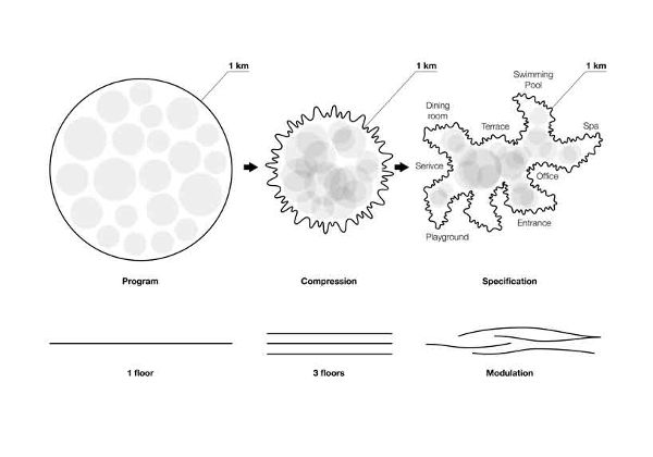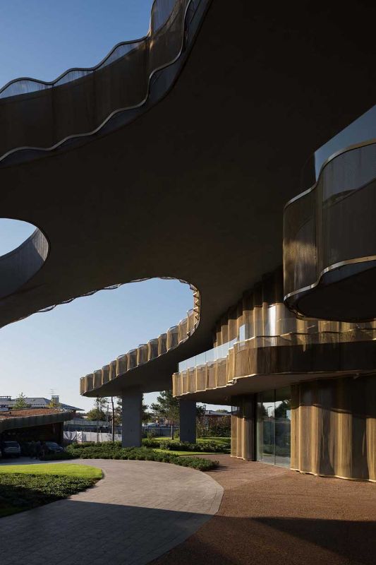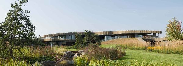 建筑形式由J. Mayer H.设计,延伸至场地。这种水平性是由许多要素实现的。首先是植被覆盖的屋顶,它在某些点接触地面,在建筑和自然之间形成了柔和的过渡。得益于详细的景观设计,该建筑也有效地嵌入了地块中,既反映了住宅的曲线形式,又融合了原始自然风光。
