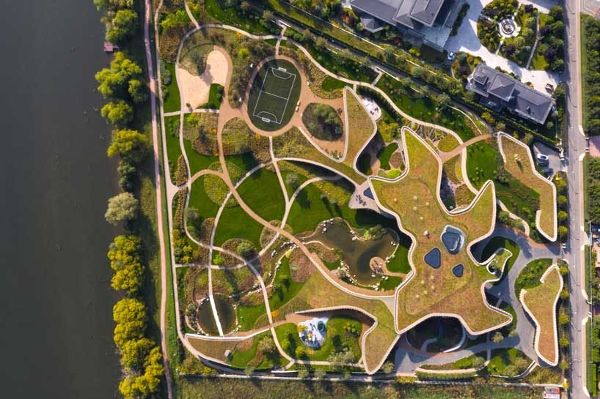 绿色屋顶和密集的地板不仅仅是为美观而设计,它们还通过表面蒸发、加热和冷却的热缓冲能力提供了更好的室内气候。这座住宅的一侧还与莫斯科瓦河接壤,但是建筑师在新建筑与水之间留出足够的距离。总体而言,考虑到家庭住宅的巨大比例,J. Mayer H.的设计有效地创建了一个与场地相融合的建筑,就像伪装成周围环境的动物一样。N.N.住宅探索了自然和建筑形式之间的界限。