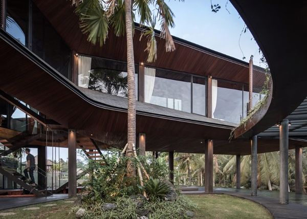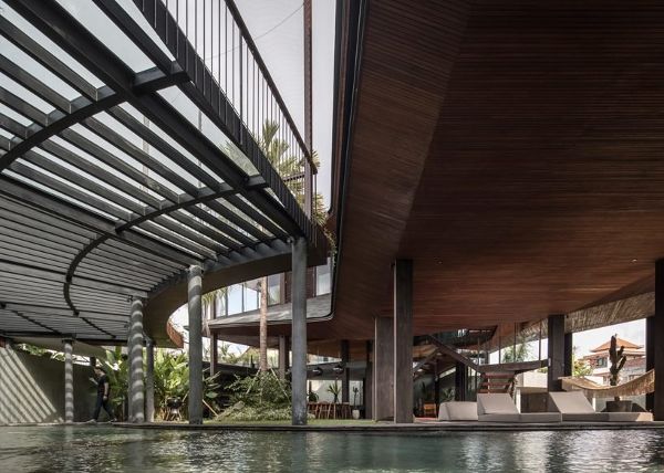 材料的色调以再生木材的外观和用途决定。从结构柱到天花板和地板饰面,木材被用于各种样式,营造出温暖而诱人的家庭环境,非常适合热带巴厘岛。