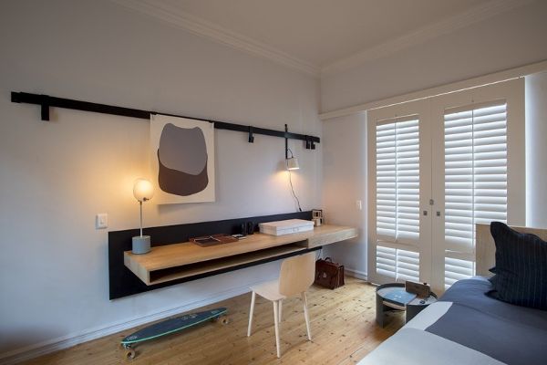 位于居中位置的厨房向起居空间和室外露台开放,着眼于外部景观。一张简陋的大餐桌,由家里回收的松木天花板板制成,辅以一系列David Kurgnauw Joburg的602椅子。主卧室(仍保持其原始位置)可面朝门廊打开。新的主浴室是一个安静的地方,推拉门可滑动打开露出一个僻静的花园。