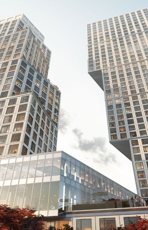OMA在布鲁克林的Greenpoint设计了两栋住宅楼,它们同时相互倾斜。这两座塔楼,再加上一座较低的七层建筑,将为该社区带来745套住房——其中30%是经济适用房,并为邻里提供了超过一英亩的新公共开放空间。该项目由OMA的合伙人Jason Long主导,旨在推动滨水区从后工业化边缘向向包容、充满活力的社区环境的转变。Greenpoint项目于2019年3月首次亮相,并于2019年11月破土动工。