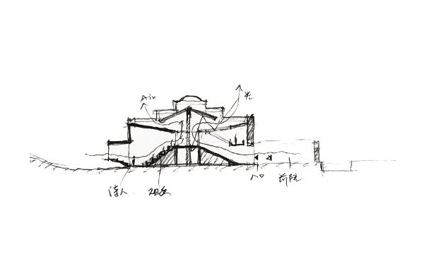 楼板的边缘与夯土墙分开一段距离,以便光线可以通过上面的天窗进入。在新的混凝土结构和墙壁间形成一个封闭而内敛的图书展示区。在两个展示墙之间有一个剧院空间,它是最大的内部空间。同时,西面的悬臂上有一家咖啡馆,游客可以在咖啡馆里欣赏村庄和周围稻田的美景。