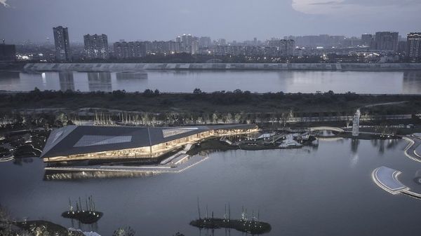 受开发商万科委托,冼剑雄联合建筑设计事务所(XAA)在中国眉山的一个湖畔遗址上设计了了“东坡书院”。该项目从这座城市的历史和文化中汲取了灵感,特别是其文学背景。有趣的是,该设计还向当地的文学之神致敬,因为据说他降世并成为了眉山市的象征。