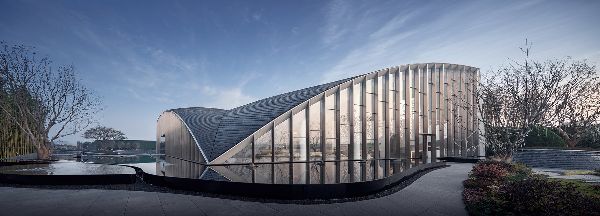外墙采用超透玻璃,巨大而透明。白天,阳光充斥着室内,而夜晚,建筑表皮照亮了公园。部采用工业金属板与优美的曲线相结合,传达江南诗意。除了江南的传统美学之外,新材料、新工艺的运用,造就了一座与当地历史文化相协调的当代建筑。