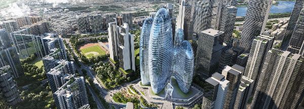 扎哈·哈迪德建筑师事务所在智能手机制造商OPPO举办的中国深圳总部大楼的设计竞赛中获胜。他们将这个占地185000㎡的设计设想为四个相互连接的塔楼,高度达到200m(42层),包括两座由20层垂直大厅连接的灵活开放式空间塔楼,以及两个提供垂直循环的外部服务塔楼。