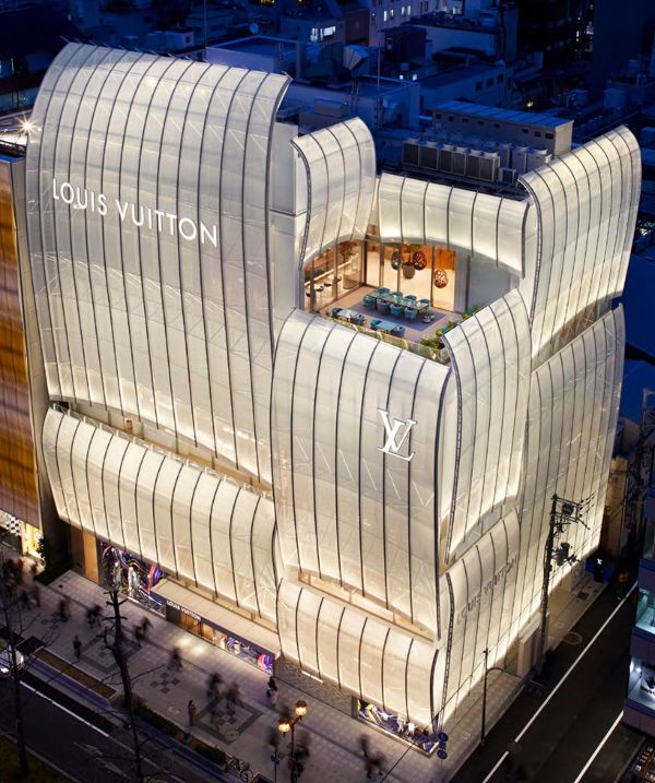 法国时装路易·威登在日本大阪开设了最大的旗舰店,其立面由建筑师Jun Aoki设计,内部装饰由纽约设计师Peter Marino设计。设计灵感来自帆船,反映了该市作为日本最重要港口的传统。